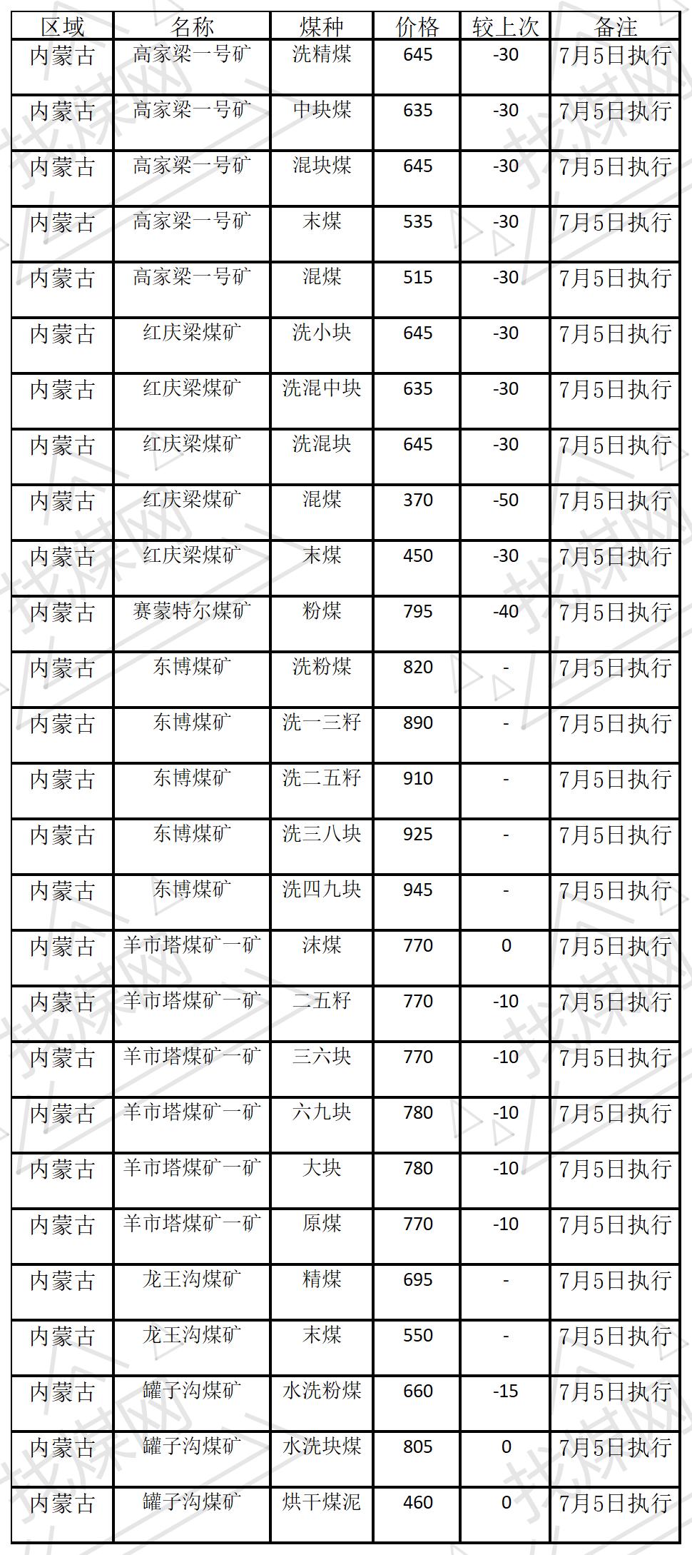 价格方面,煤价小幅下跌,高家梁、红庆梁、塞蒙特、东博、羊一、罐子沟下调10-40元/吨。