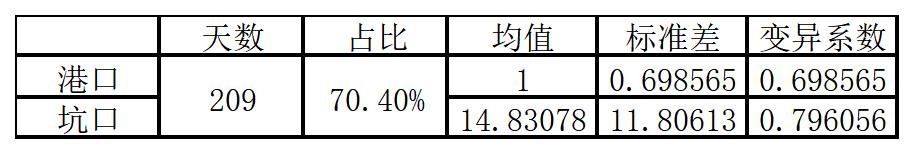 (二)异趋势。价格趋势的异趋势,指坑口和港口价格“当天一地涨,另一地跌(不变)”或者“一地跌,另一地涨(不变)”或者“一地不变,另一地涨跌”的情况。在297个样本中,两地环比走势相反的天数有209天,占比70.4%,约七成。从整体变异系数来看,两地环比相反的情况下,港口环比价差的波动要小于坑口价格,即在推荐的定价机制下,坑口价格环比波动要小于实际的坑口价格。