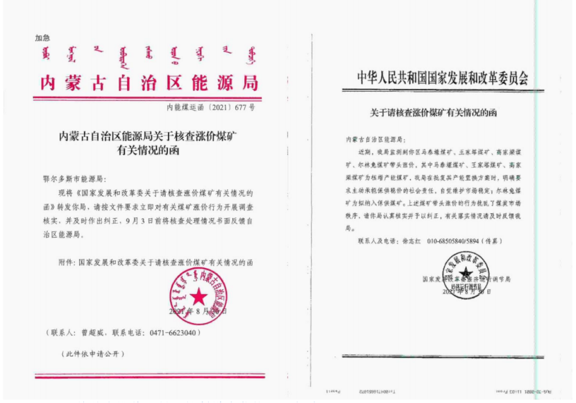 近日,国家发改委向内蒙古能源局发函要求核查涨价煤矿情况,提到马泰壕煤矿、王家塔煤矿、高家梁煤矿、尔林兔煤矿带头涨价,作为核增产能煤矿(马泰壕煤矿、王家塔煤矿、高家梁煤矿)和保供煤矿(尔林兔煤矿),带头涨价的行为扰乱了煤炭市场秩序,要求内蒙古能源局核实并纠正。昨日,几大煤矿纷纷调价,尔林兔煤矿粉煤执行价下跌近200元/吨,高家梁煤矿混煤下调20元/吨,王家塔煤矿下调18元/吨,马泰壕煤矿粉煤下调30元/吨。