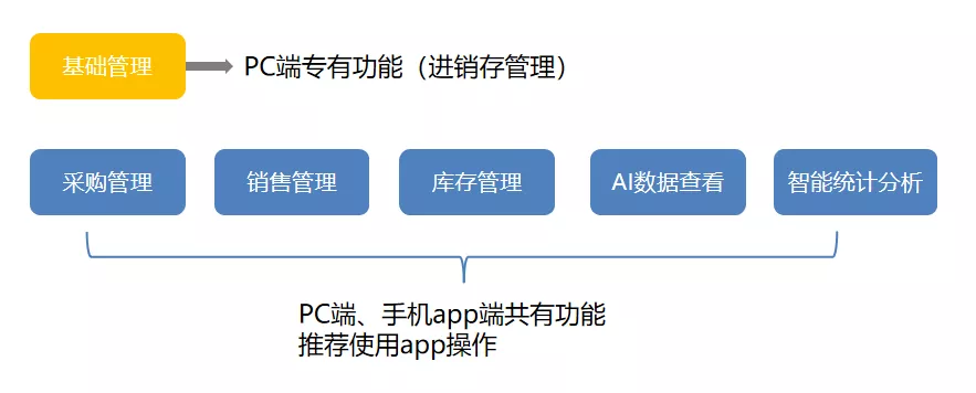 ░ PC端可进行进销存管理。合同、收付款、收开票、结算等的基础工作。