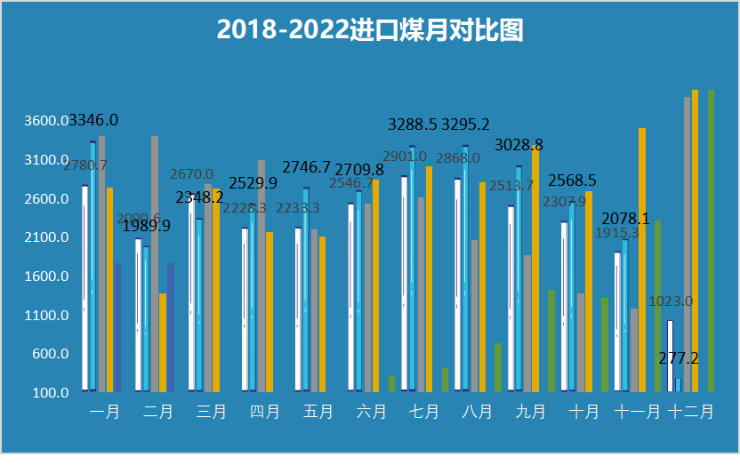 2)2022年1-2月累计进口煤炭3539.1万吨,同比下降13.95%,进口煤总价373.9亿元人民币,同比增长116.5%。