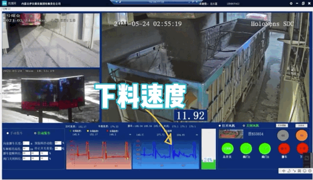 然后,利用机器视觉、雷达等设备采集车辆信息(车牌号码、车型、车厢长宽高、车厢实时料位高度、车辆位置、挪车距离等),调整装载量。