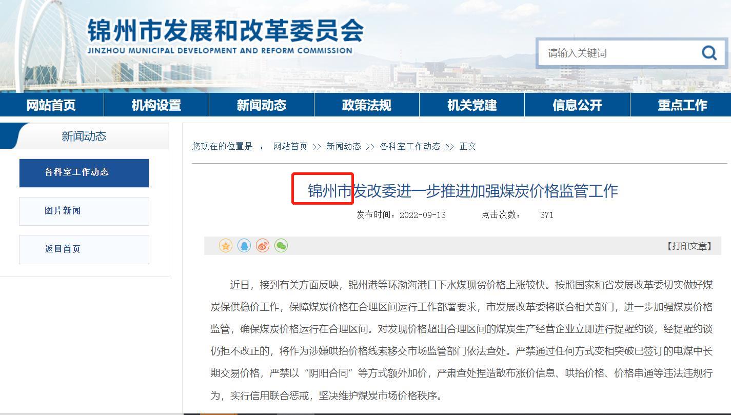 9月13日-14日,锦州、唐山、秦皇岛市发改委接连发文表示,接到有关方面反映环渤海港口下水煤现货价格上涨较快,为维护煤炭市场价格秩序,切实做好煤炭保供稳价工作,对部分煤炭经营企业进行了约谈。对此,煤炭交易市场参与者看法不一。